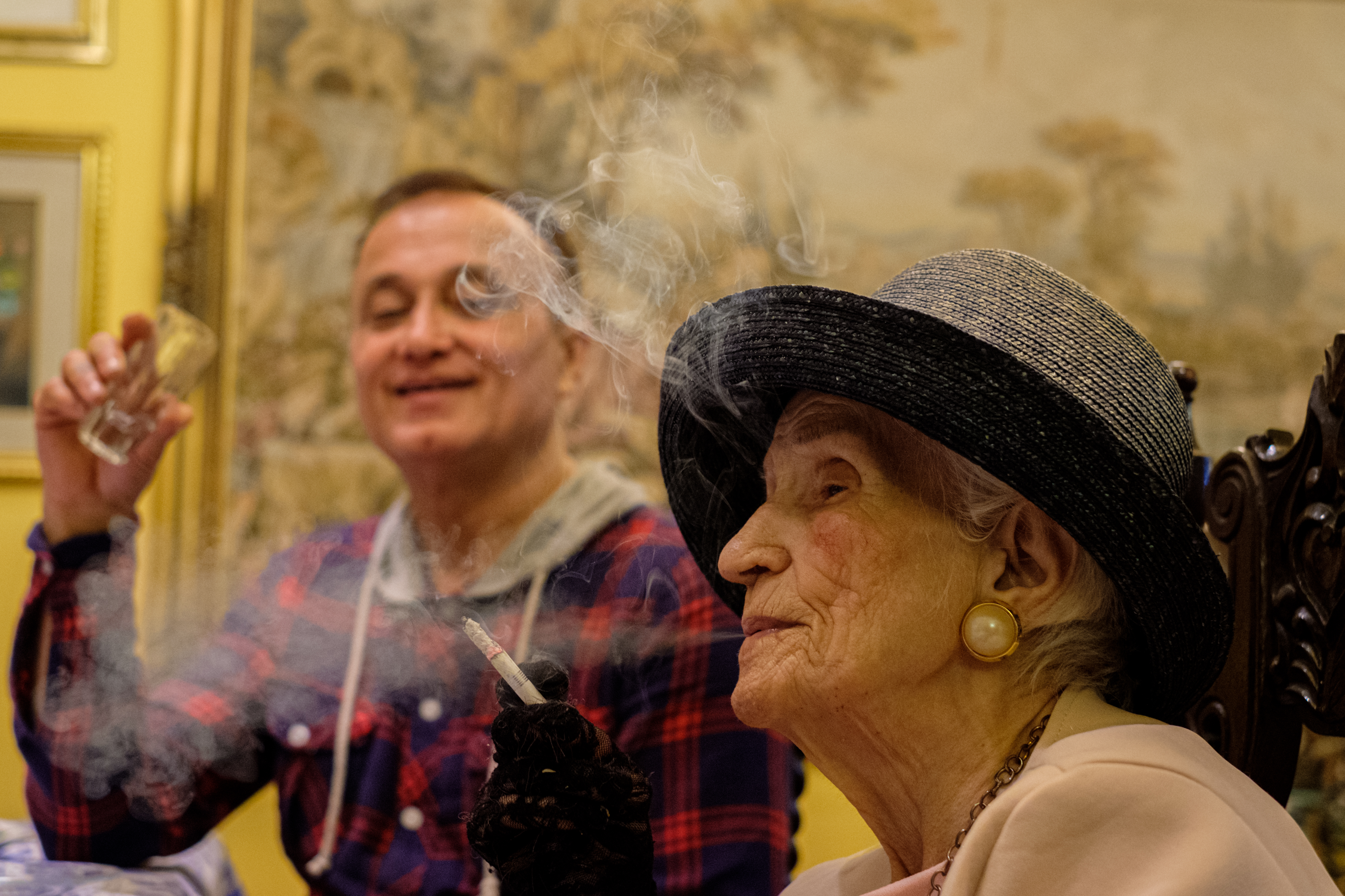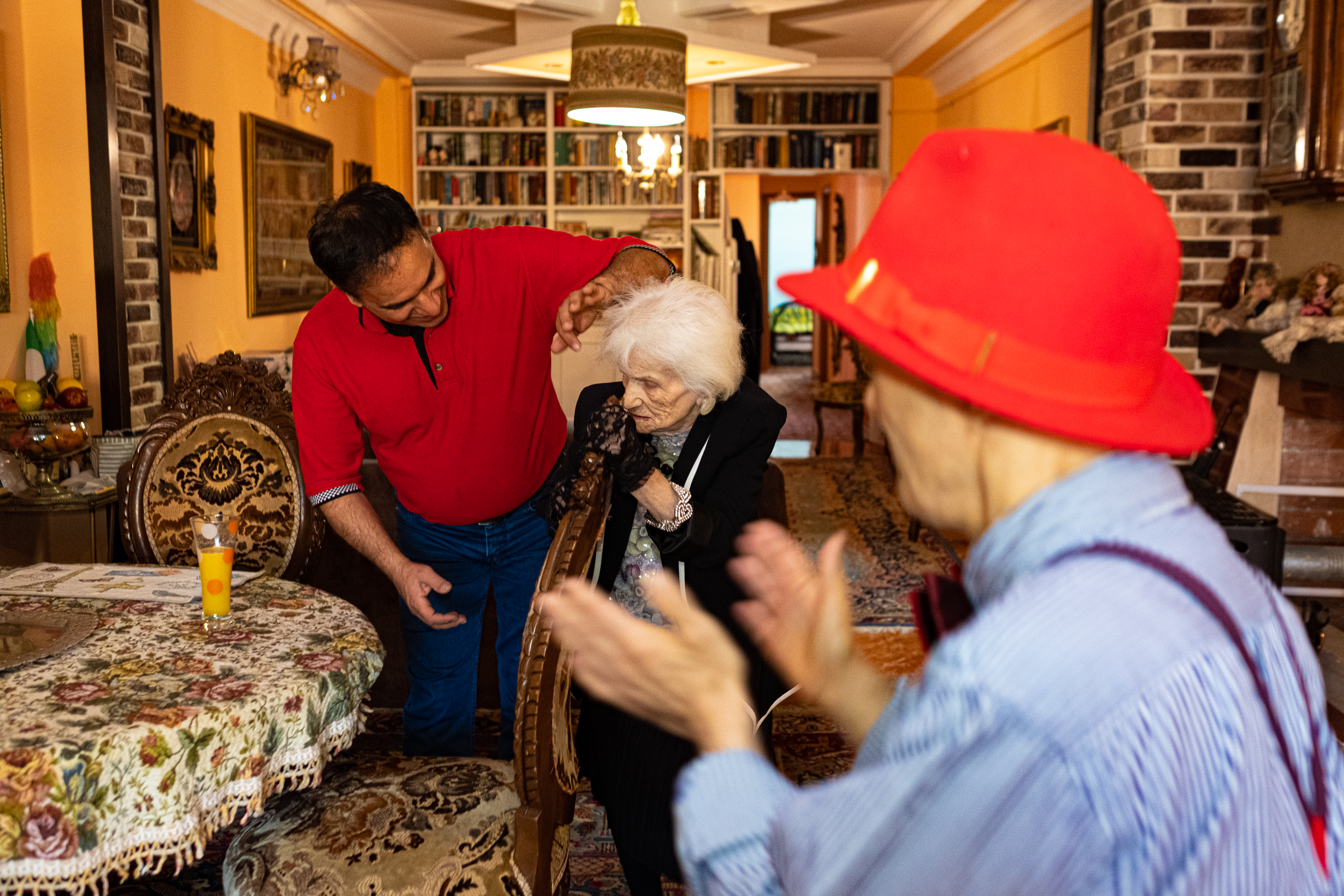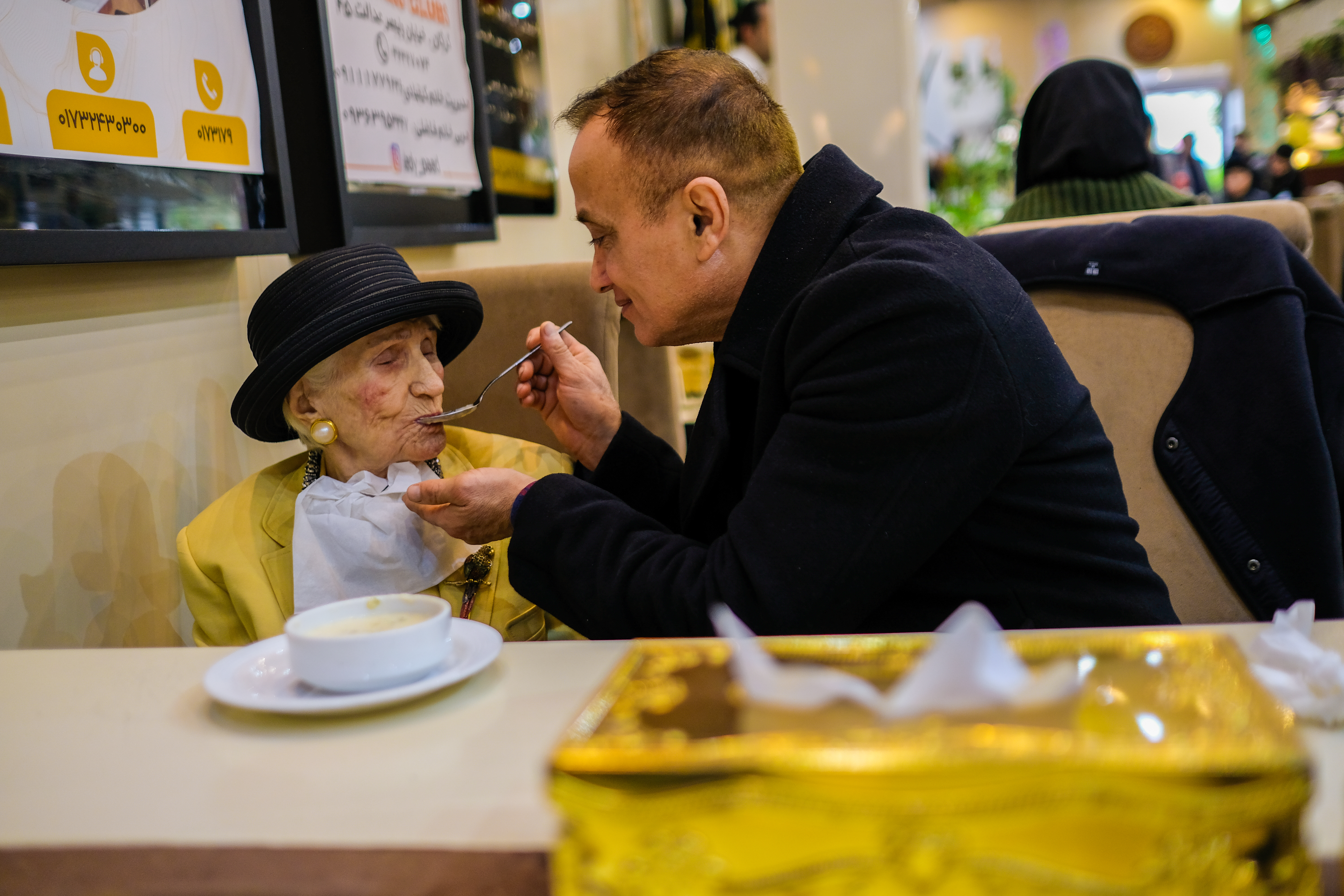 Yoones’ dedication to his brother and mother is boundless. He concentrates all of his free time and holidays to them. When Yoones is back in Iran from Italy, it’s party time for the family and Yoones sees it big! The Family’s vintage cars are taken out. They take a ride in the vintage family Cadillac, listening to loud Iranian music in the streets of Gorgan on their way to have lunch in the city. Taj is even allowed to smoke one of her Russian cigarettes in the evening after dinner time! When Yoones returns to Italy, it is Reza, his longtime friend, who takes care of Yekta and his mother. Reza is the one who takes them to lunch in town. During his absence, Yoones insists that his mother should be stimulated by music. Television has no room in their home. What we can’t miss is Taj’s huge wardrobe and a canary singing all day long, in the living room. Taj loves to whistle along with the canary. She dances whilst seated or at her own pace near a chair or a table and sings with her son Yekta until nap time.