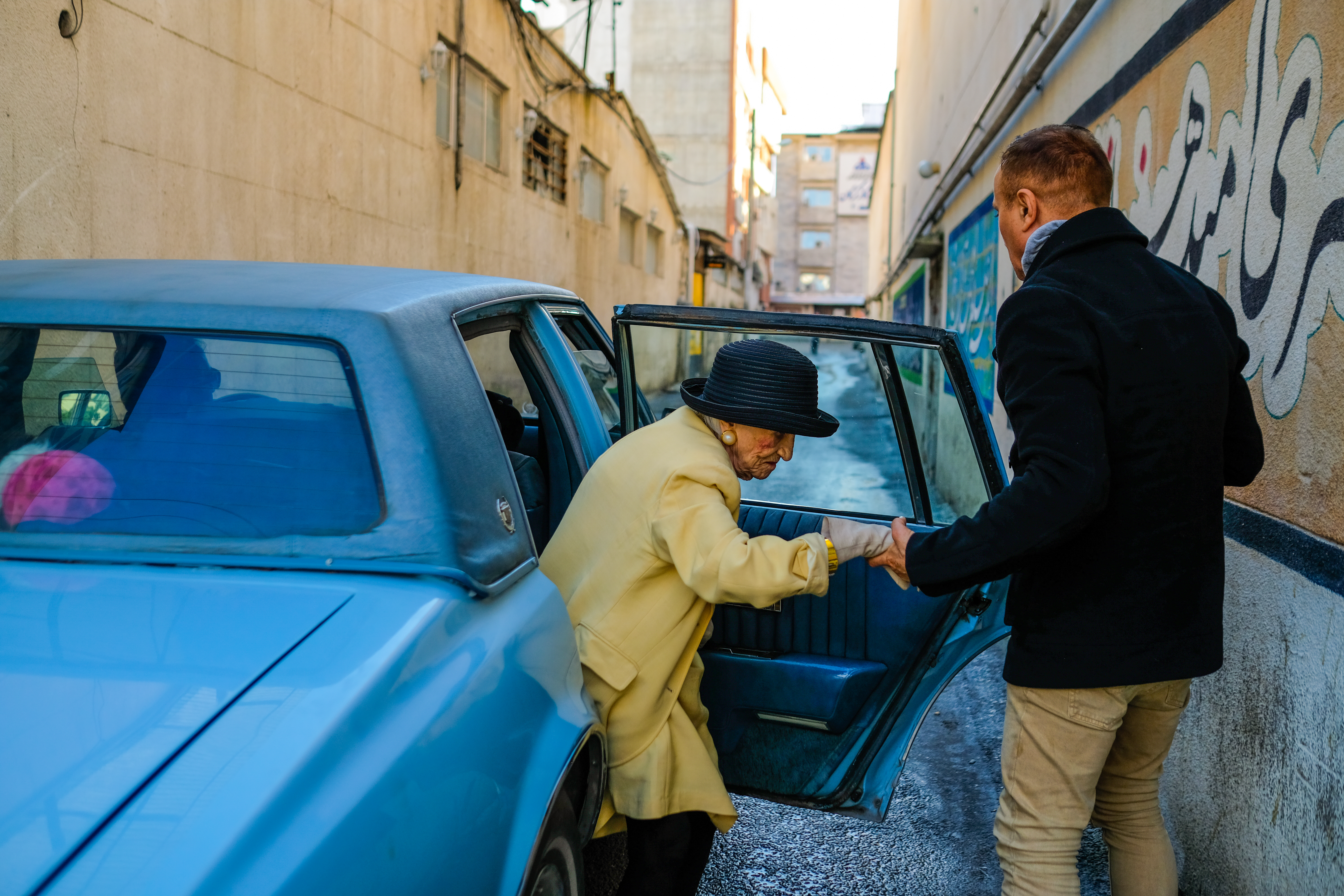 Le dévouement de Yoones envers son frère et sa mère est sans bornes. Il leur consacre tout son temps libre et toutes ses vacances. Quand Yoones revient en Iran, c’est la fête et on fait ça en grand! On sort les voitures de collection. Ce sont des balades dans la Cadillac vintage de famille. C’est la musique iranienne à plein volume dans les rues de Gorgan pour se rendre au déjeuner dans les restaurants de la ville. Taj a même le droit à sa cigarette russe le soir au dîner! Quand Yoones repart en Italie, c’est Reza, son ami de longue date qui prend soin de Yekta et de sa mère, qui les emmène déjeuner en ville. Yoones tient à ce que, durant son absence, sa maman soit stimulée par la musique. Chez eux, il n’y a pas de télévision. Juste l’énorme garde-robe de Taj et un canari qui chante toute la journée, accompagné des sifflements de cette dame élégante. Elle danse assise ou à son rythme près d’une chaise ou d’une table et chante avec son fils Yekta jusqu’à l’heure de la sieste. Quant à son fils, il est fasciné de “daftar” à paillettes qui veut dire en farsi “cahier”, il les collectionne par dizaines. Voilà comment se déroulent les heures et les journées au sein de ce petit foyer de Gorgan.